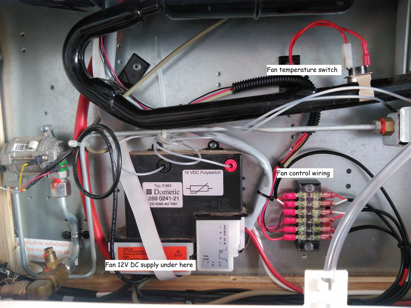 Some great suggestions posted so far, and here's my offering to go with them! My Dometic 3-way already had a place to wire in an optional fan - yours may have similar, so worth check out a wiring diagram online. I wired two fans into this, one at the bottom pulling air in and other at the top pushing air out, so they worked in conjunction with the natural air flow of hot air rising. Also installed a 3-way switch on the front of the fridge that allowed me to have the fans on, off, or controlled by a thermostatic switch so they came on automatically when the fridge was cooling. Oh and an LED to show me when they were running. Can't say how much difference just the fans by themselves made because I made a few other changes at the same time, but overall the fridge operated much better after my modifications. Did take a bit of time to tweak the position of the thermostatic switch so that the fans cycled on and off with the cooling mechanism, but once I got it right I left it on auto most of the time.