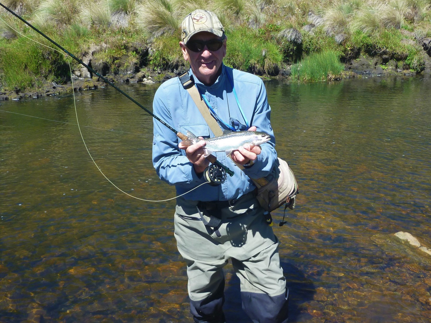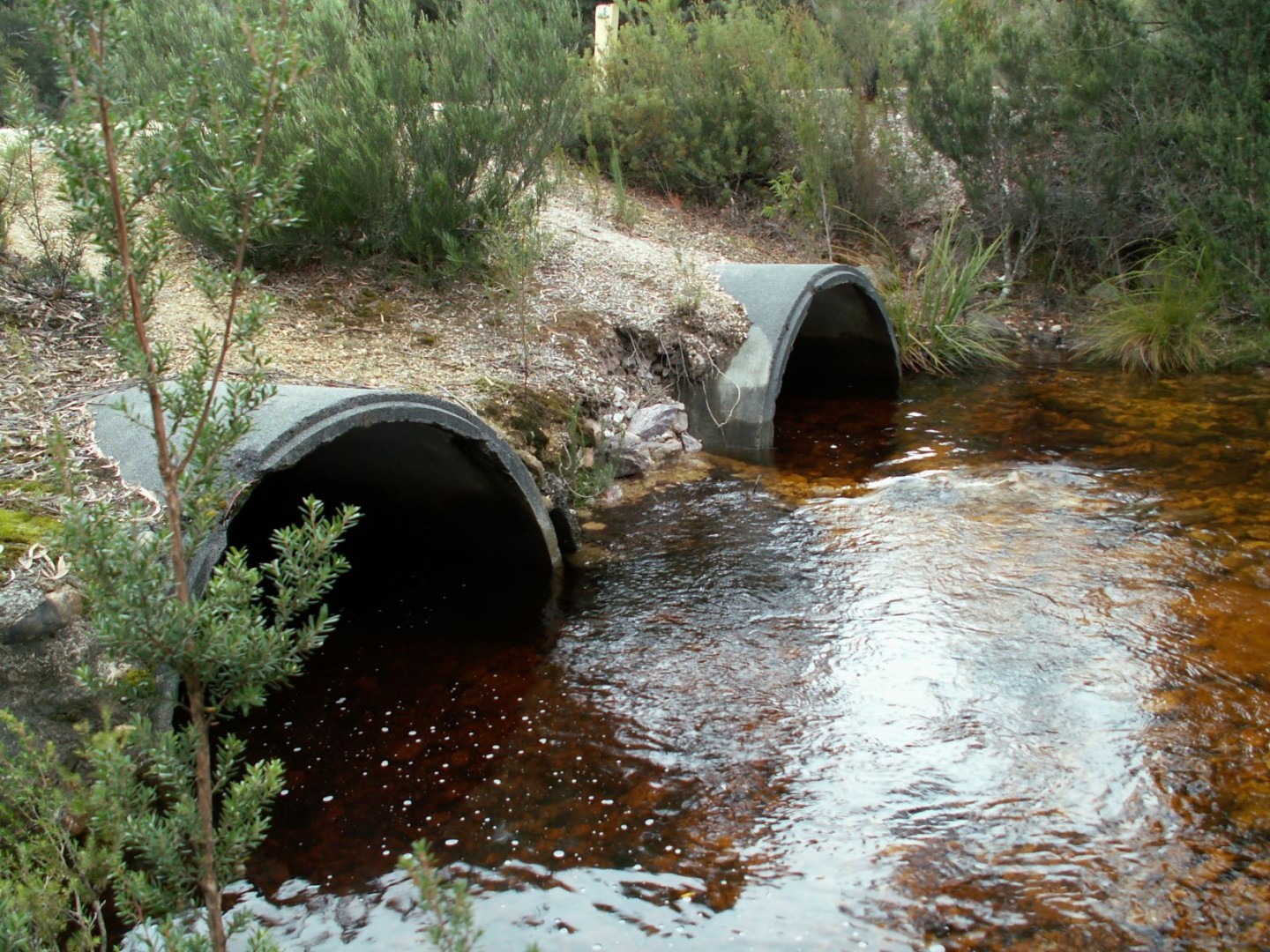 We were driving along this gravel road and went across a creek that went under the road via a couple of big pipes. As we crossed I noticed a trout just past the pipe outlet, so stopped the OKA, found some nylon and a hook, walked back to the up stream end of the pipe, found a worm and a piece of stick for a float, then floated the worm through the pipe and caught the trout :)