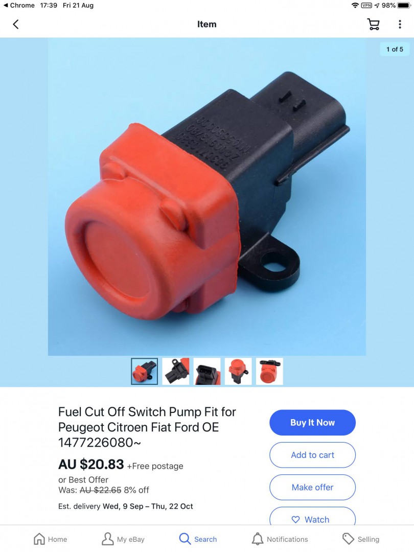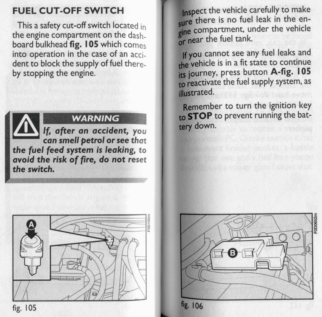 2006 Fiat Ducato 2.8TD Inertia Fuel Switch - could apply to other MH as well: