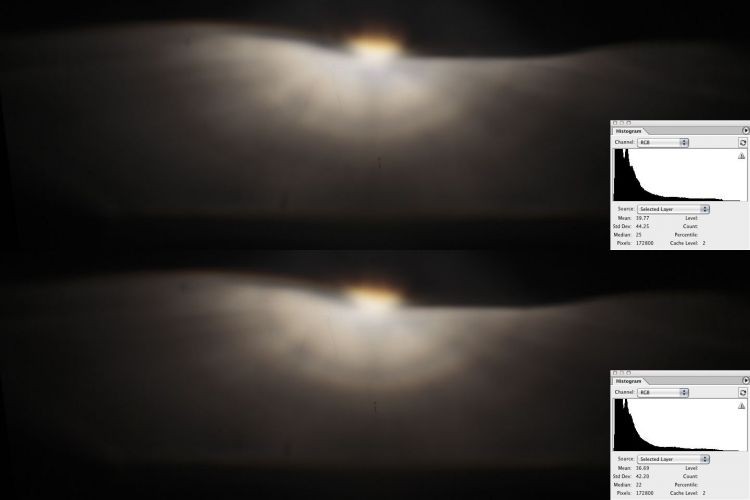 Both photos were an average of photos to minimise any exposure variation of a single photograph. Off a white panel in the back of the garage, right headlight old globe & new globe. Battery was 12.2 volts for both globes.