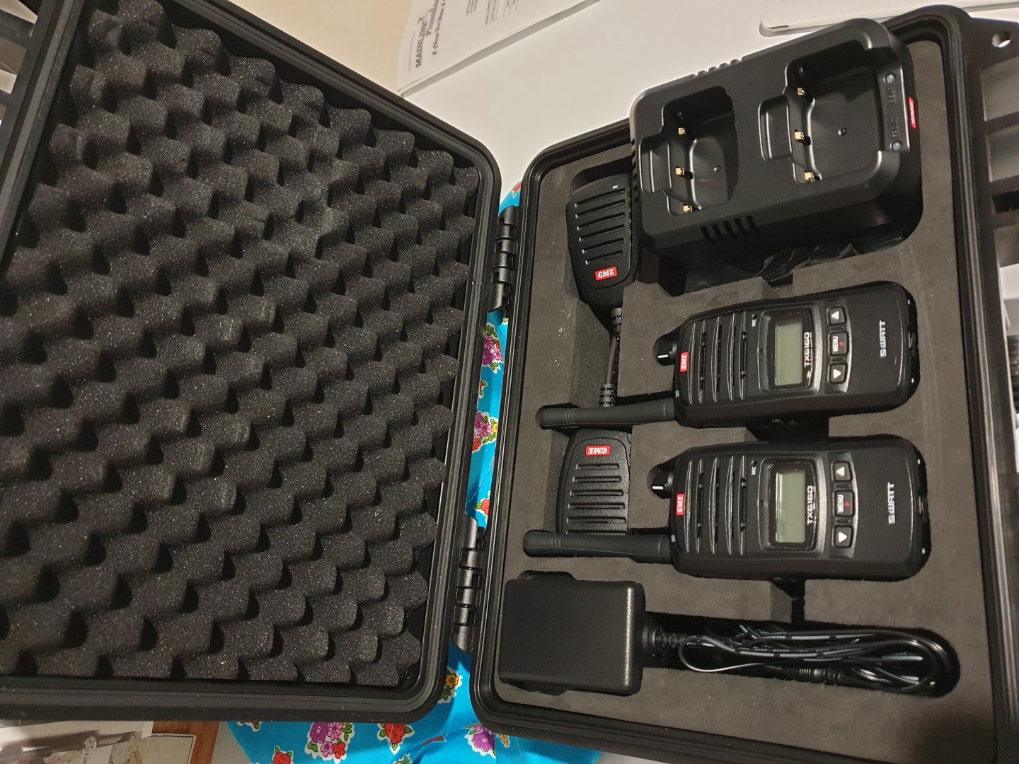 Welcome to the forum. I have a GME set of handhelds that you can charge in the car. It also comes with ear pieces or microphones so there is no need to pick up the radio when communicating