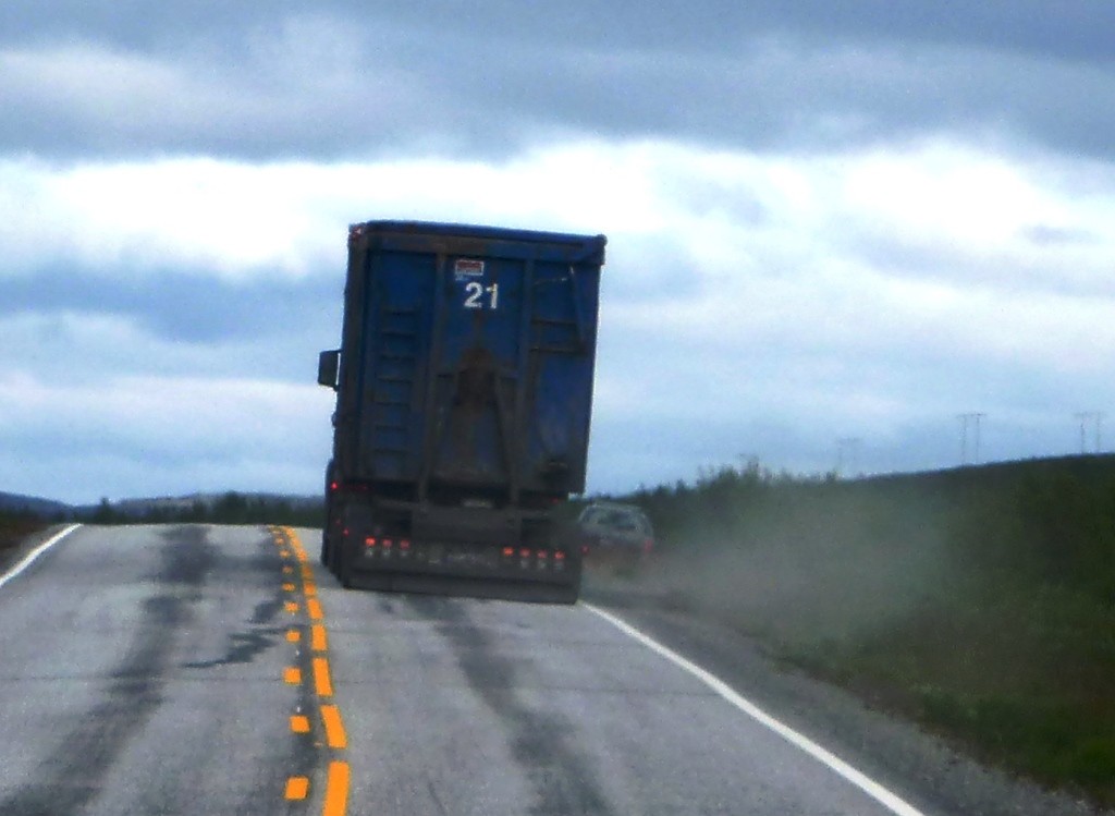 Hi Peter...is the small vehicle,to the right of the truck,taking cover from the impending shower of stones,or simply 'undertaking',as I have had happen to me on a long climb in a 62 ton B-Double with only 400hp? Cheers