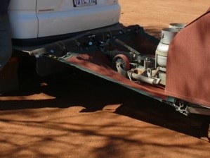 Mk 4 was a version of the Rock Tamers - four HD mudflaps from Supercheap, a section of 25x25 square tube, a square U bolt to go over the tow bar hitch & some misc pieces of steel to steady the whole thing. Cost was $35.