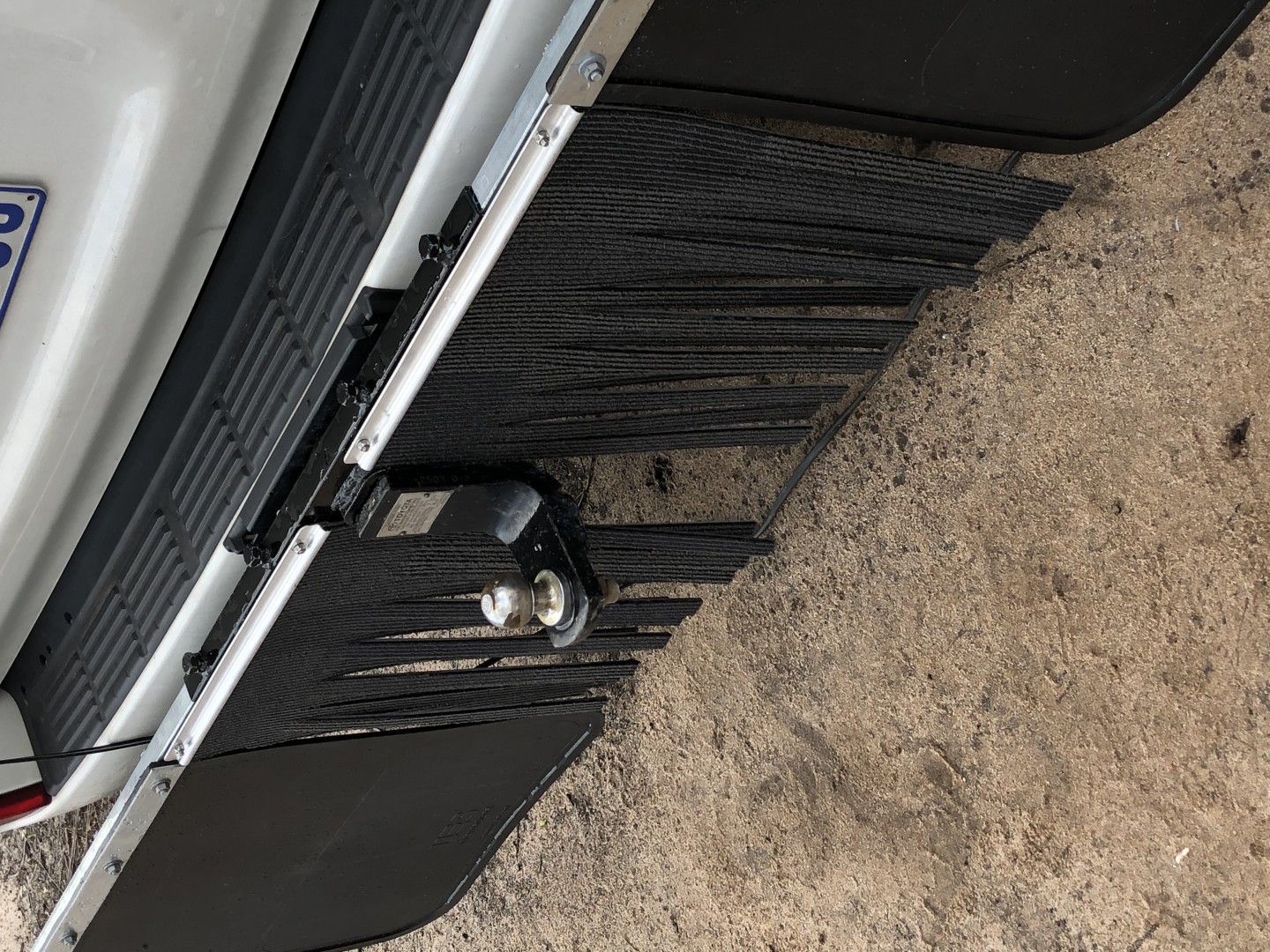 PLEASE do NOT be tempted to use a full width mud flap. These devices should be banned in my view because of the dirt and rocks they throw up for other vehicles going in the opposite direction. That dirt and rocks also erodes the road.