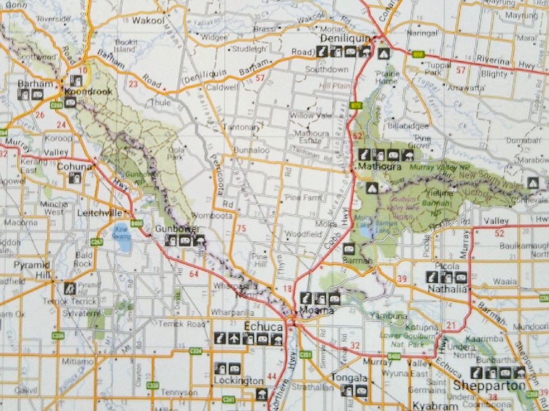 There are plenty of free camps along the Murrumbidgee or Murray river most do not have facilities but most are near towns .Nyah is a good one near the harness club its got dumppoint water toilets .Tocumwal has lots of free camps on the river also low cost camp with facilities a lot of towns along the Murray welcome free camping