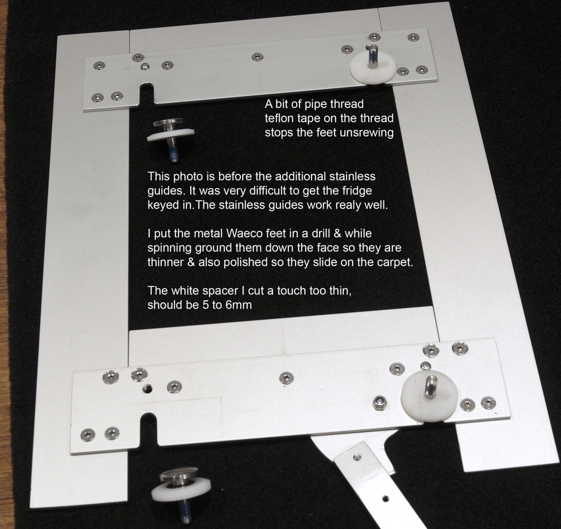 Stainless steel guides I added which made all the difference clipping the fridge in place.