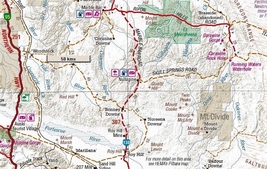 On checking google maps for time distance etc from Marble Bar to Carawine Gorge it shows about 7 hours.