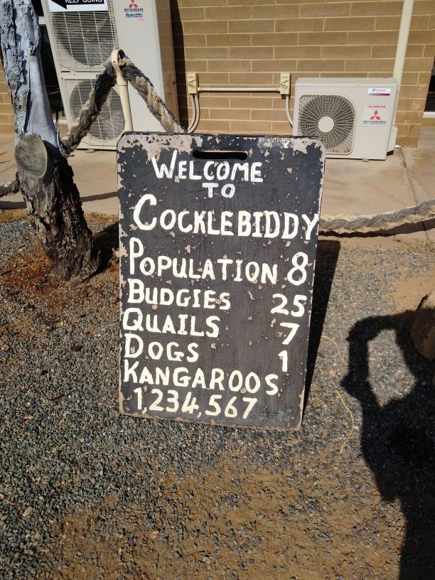 But check the signboard at the C*cklebiddy Roadhouse. That gives the number of staff, dogs, kangaroos and flies in the area - flies are numbered in the many millions!