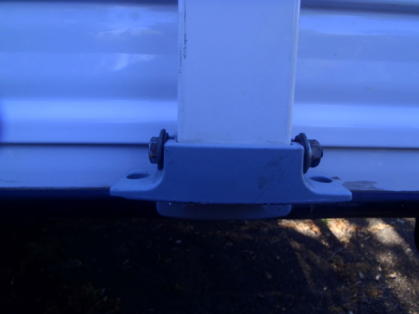 The main roller axles are 19mm OD 2mm wall aluminium tube fastened by 6mm through bolts that are supported in pressed steel brackets. This is a recipe for failure as all the wind up roller tension is loading this area of the construction.