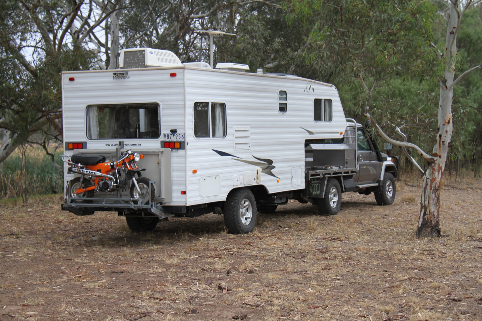 Like your fifth wheel set up KB and like another poster wonder why they are not far more popular here, my father had one over in kiwi and raved about it. Perfect little road rego honda get about and you can ocky strap a slab on the rear carrier.