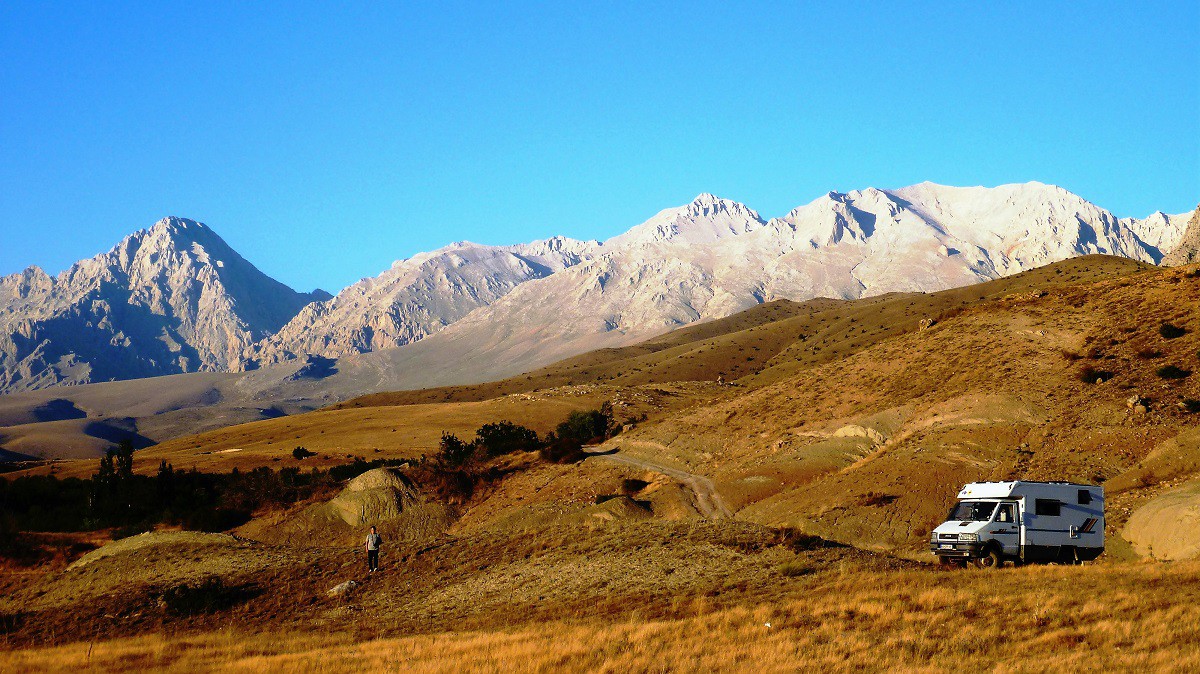 We bought a 20 year old 4WD Iveco with solar and central heating for E17,000. It needed a lot more mechanical work than we anticipated but even so, the total vehicle cost was about $85 per day and that provided all of our transport and all of our accommodation. 90% of our camping was free and most of the rest was very low cost.