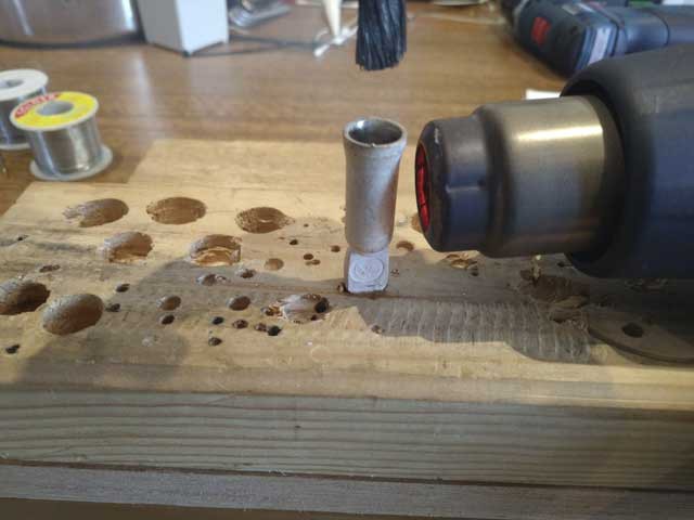 If you don't have a powerful enough soldering iron for 6awg, a heat gun works very well.