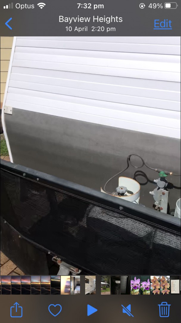 When we returned home, I set to and repaired the hole. It was about the size of my fist, but luckily was down low in the front storage boot area and the galvanised lining had not been damaged. I carefully pulled the torn aluminium back roughly into shape and sealed this with a tube of silicone. The vinyl was also torn, and I managed to carefully pull the shards together. I 'soaked; the fabric backing of the vinyl with more silicone and carefully pressed it back in place. Now, I know it is damaged and repair, but the casual observer probably would not notice this at all. There is a bulge where I put too much silicone in the aluminium repair, but otherwise it looks good.