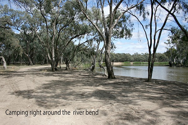 This free camp is just over 20 Km from Deni.Take the Calimo Rd. on the way out to Stevens Weir.It has toilets and a boat ramp you camp around the river bank.It is just before Stevens Weir