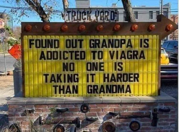"I have a friend who decided to stop using Viagra, he said that if he didn't swallow them quickly enough he got a stiff neck, so he threw them down the toilet."