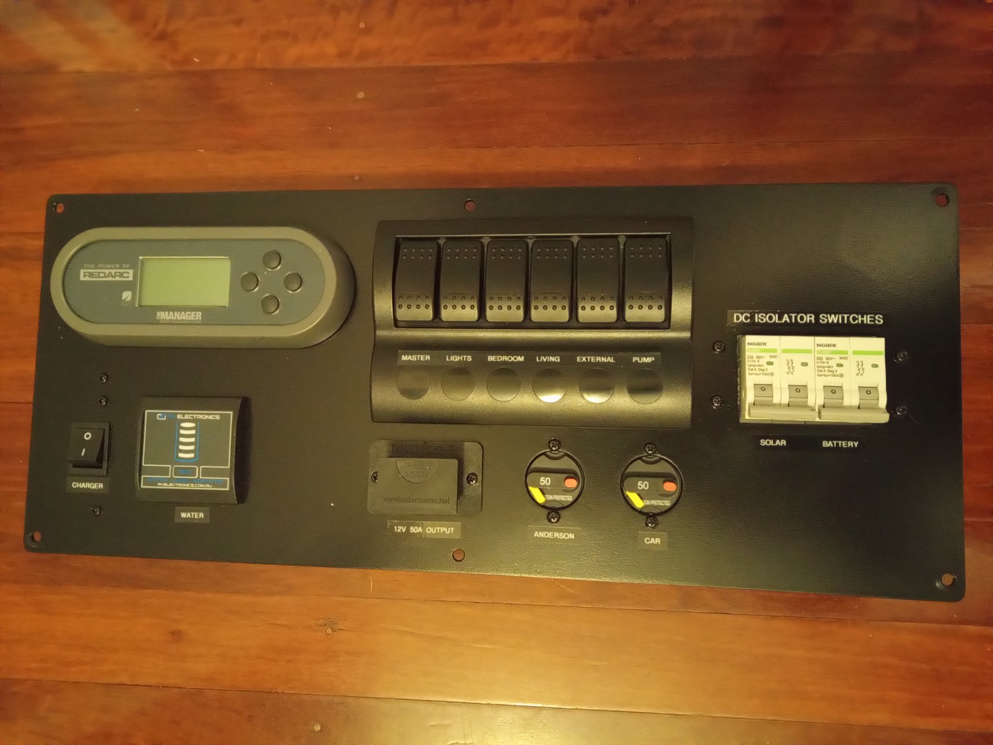 My new camper trailer came with quite a basic electrical system and I ripped it all out and started again. I made my panel to fit in the exact same spot as the original one.