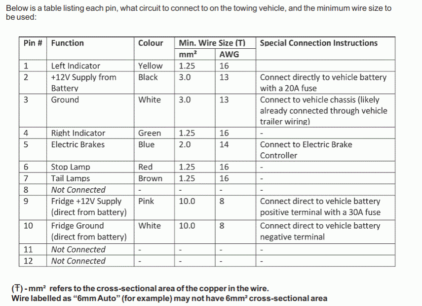 After looking at my 12pin it appears to be factory standard with pin 9 (pink) & pin 10 (white) setup for fridge supply, am I correct ? Is there a wiring diagram available ?