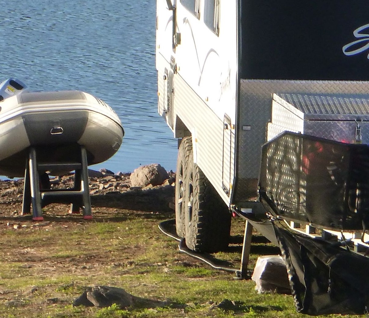 Running grey water over lawn areas is quite a bit different to releasing grey water adjacent to a fresh water lake or stream. The grey water contains nutrients and pollutants of some form. Excess nutrients can help with the growth of algae thus increasing algae concentration and in worse cases, algae blooms. Fresh water and native Australian plants have a lower tolerance to Phosphates which is still contained in many of our detergents. Phosphates also assist to promote algae growth. From Peter's information, there were about 200 hundred RVs around the lake/river, so if a similar proportion were discharging as they were near Peter, (ie 4 out of 6) that could mean that 133 were discharging very near to the water.