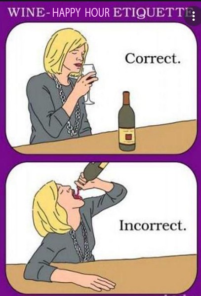 Ha Ha. The blonde skulling the wine is my type of girl. This will be a great Happy Hour - Party on.