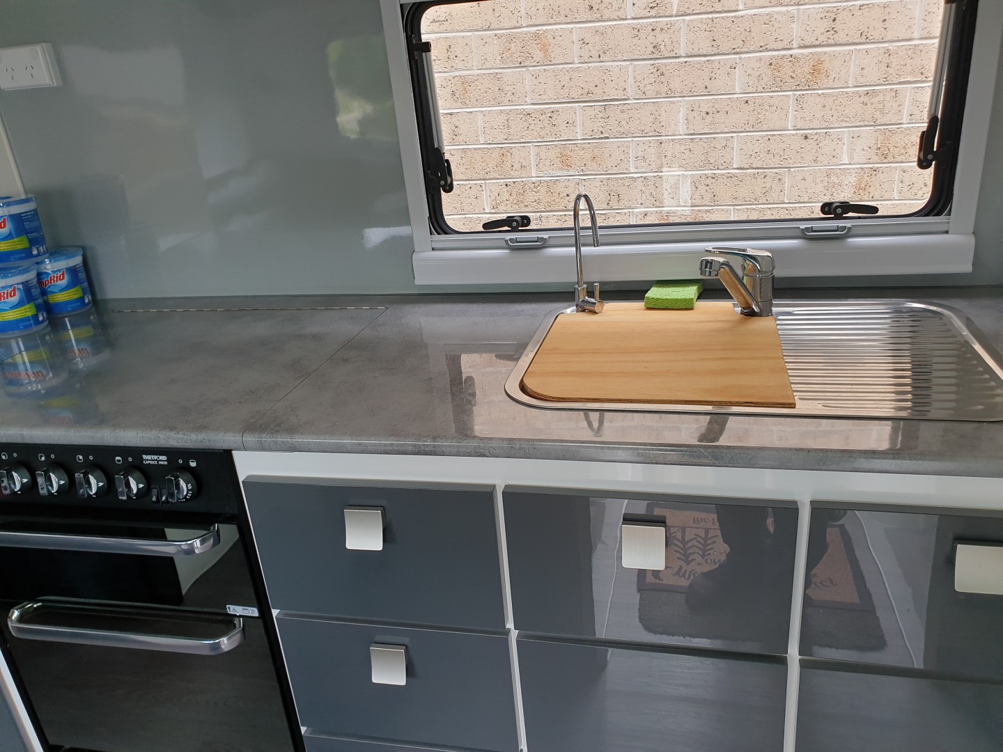And that's all it takes. You now have a removable bench top that sits nicely over the sink. And a happy wife. Happy wife, happy life. Being removable you can also use it as a tray to carry the drinks or the cheese and bikkies outside.