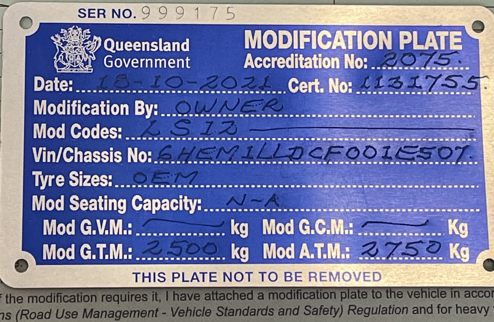 i finally managed to get on to Lindsay Stone, Im in Cairns and hes in Townsville. We chatted and he said he would come see me on his next visit up here, and sure enough about 4 weeks later, Lindsay was here with pen, pad, tape, calculator etc. Upon inspection, and detailed report I might add, he ticked off all requirements for the upgrade, apart from I minor change. Chains, hitch, brakes, chassis, suspension, tyres, wheels (theres a couple of others??) all ok . One thing the van has is an extended drawbar, so in order to certify for extra weight, a piece of duragal flatbar, 600mm long and 50mm x 5mm had to be welded on the underneath of the drawbar, about midpoint where van chassis first meets the drawbar. Lindsay provided the necessary drawing and About $55 for a 3 metre length of flatbar, had it welded, advised Lindsay and sent pics of completed job and mod plate provided, but for 2750kg. I could have gone to 2800, but the actual wheel hubs are rated at 2750, so I didnt bother to upgrade the wheels, Im happy with the 2750. I know I can travel loaded up and water full, be legal and have some headroom. Was it worth it ? Hell yeah ! Apart from the flatbar, cost was $600 and he came to me at my place in Cairns ! I have attached pics of original plate, mod plate and flatbar, so you get an idea. Cheers
