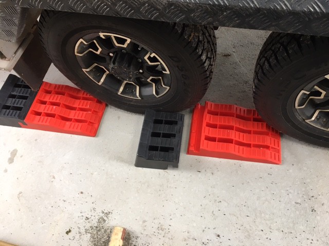 I use wooden blocks, our van has East/West bedding, and my wife is adamant the van must be level, or at least head high. The chassis clearance is high, so they double up under the jack, or axle stand to get the height, when working on the undercarriage. The van is heavy, and I ran over a chock flattening it, never noticed, so I don't trust the ramps, also the vans wheels are on an angle using the ramps, but the wheels are braked on a flat surface using the blocks. Everyone to their own.