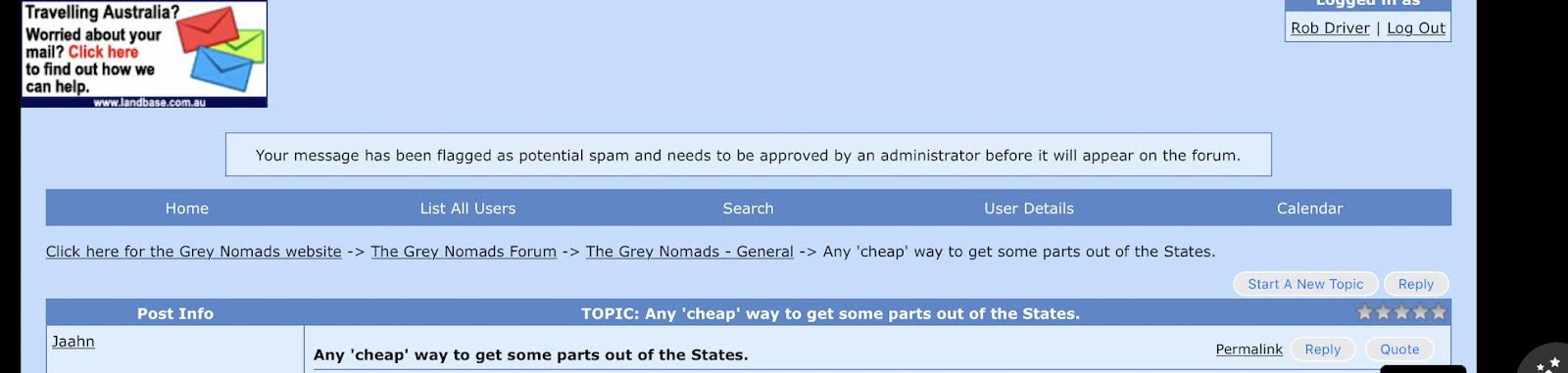 Thanks Rob no apology needed. Cindy is only doing her job too trying to defend the forum from bl**dy spammers. Thanks I will look at the sites if I get to buy again. I think by the email received from ebay those parts are lost forever. What a waste !!