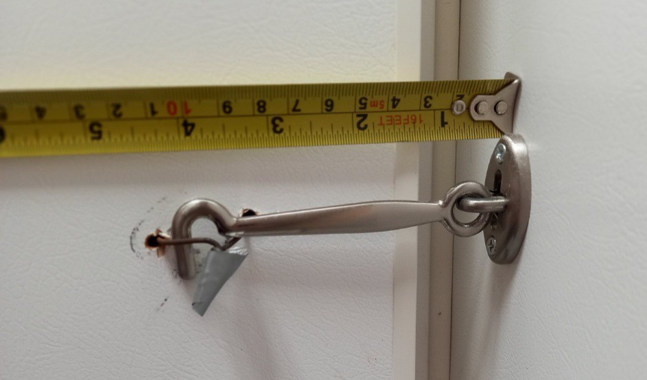 Soo, the hook/eyelet that holds the sliding door to out ensuite open when towing has come adrift. Reason being its screwed into crap Masonite. But the door has a fairly solid frame.