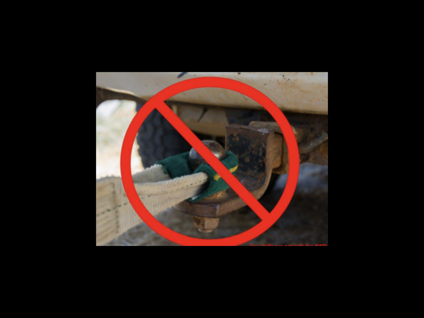 `NEVER connect a snatch or tow strap to a ball. NEVER EVER.