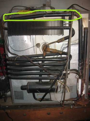 (Your fridge may not quite look like this picture but it will have all the same components) If this pipe is hot at the highest point and cooler or cold at the lower end the Ammonia vapor/medium is stalled in the pipework.
