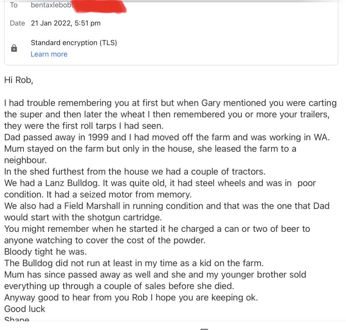 That old diesel is still running today powering a grain drying plant on a rellies grain farm.