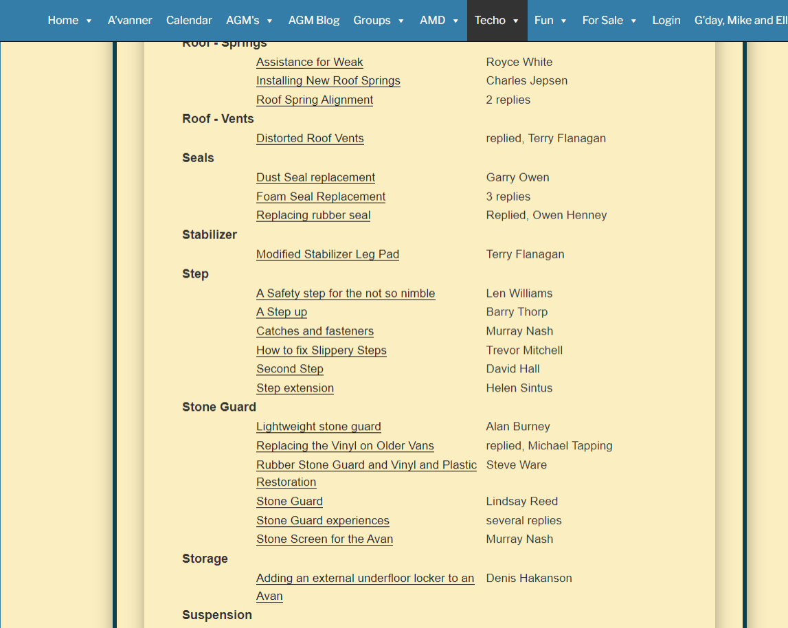 It sounds like someone needs to create an A'van group which is much more open to complaints, repair discussion and generally less censored and controlled. Try groups.io, they run a free forum/mailing list with 1GB of storage: