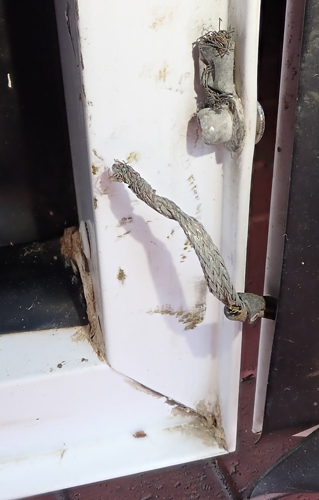 I have noticed on a few Vans lately, { mine is a Jayco Freedom } there is what I presume to be a stupidly place ground/earth wire at the bottom of the door frame. It is unsurprisingly broken due to opening/closing of the door, has been broken for years by the look of it. Seems a silly place to have a wire and should I be concerned and reconnect it somewhere else ?