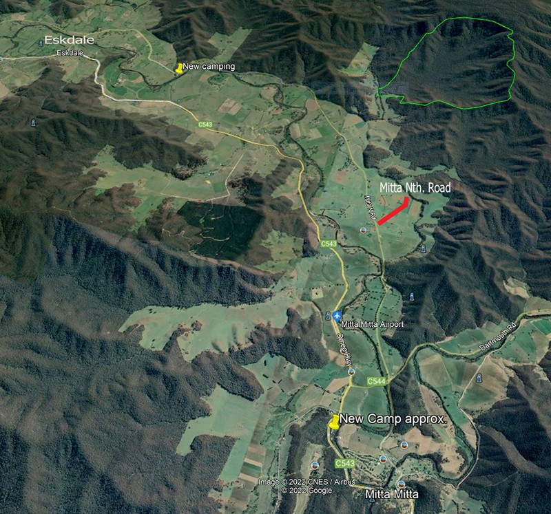 Wikicamps lists the site east of Eskdale as Platypus Bend. It appears to have been added Nov 2021. The site between Mitta Mitta town and Airport isn't listed yet probably because camping hasn't started.
