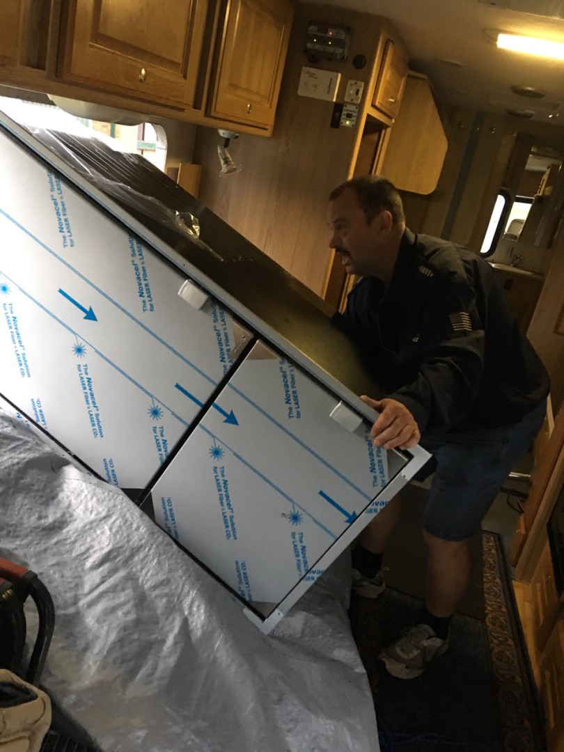 Some of the problems we encountered, was getting the 3 way out, its too wide to go out the door, so we had to minor surgery to the largest windows in the van together it out.