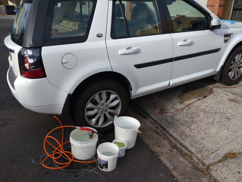 It's about the same amount of water I use to clean the car. But with the car I use the car's onboard compressed air water setup at 0.5 litre per minute.