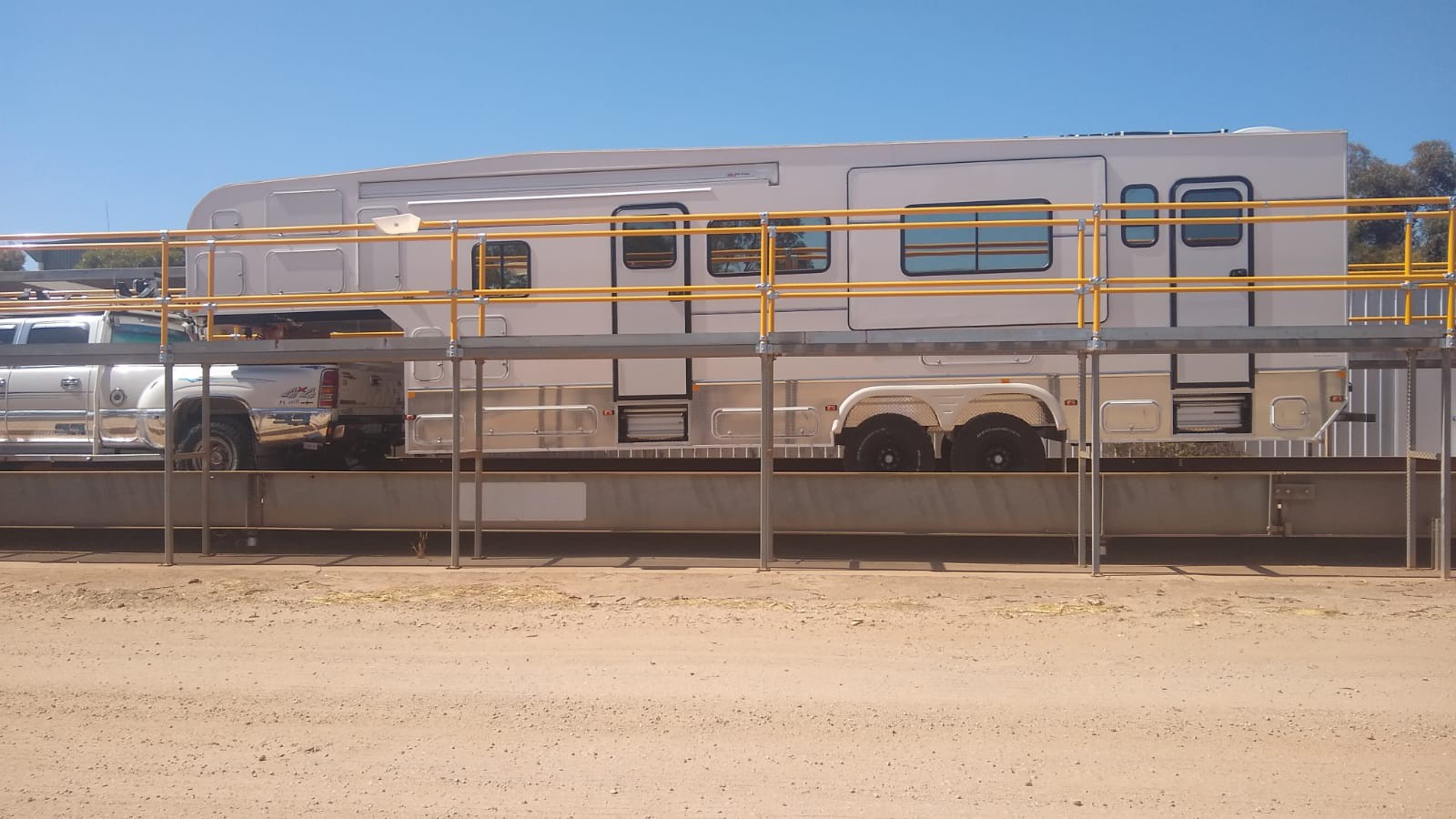 Just a few numbers, this is what people usually ask me. The van is 11.03m long, 2.46m wide (official measurements). Height 3.4m Tare 5.5t, ATM 7.0t, GTM 6.0 (that's the max axle load). Coupling weight 790kg. The tare includes everything (solar, fridge, deck, mattress, recliners, TV, generator) 1400 Ah Lithium, 2.7Kw Solar, 6000 W inverter (2x3000 in tandem), built in 3kva generator Small 1800W inverter for inverter fridge and ceiling fan. Dual head split system aircon. Solar panels can be lifted for cooler operation and creating a tropical roof. 600l fresh water, 200l drinking water, 2x150l grey water tank, 150l black water tank. Dual 15amp power connections, max AC current from inverters 64Amp@230V. regards Gmd