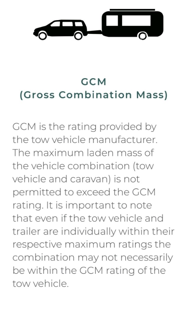 Gross Combination Mass (GCM) is a RATING and is defined in Vehicle Standard (Australian Design Rule - Definitions and Vehicle Categories) 2005,
