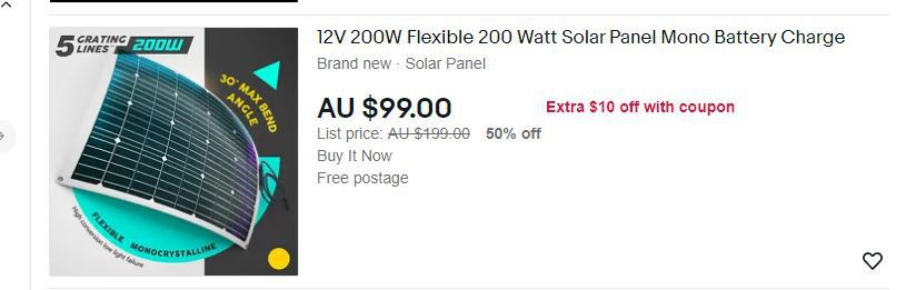 For anyone that is interested Kings have knocked $40 off their large semi flexible solar panels.