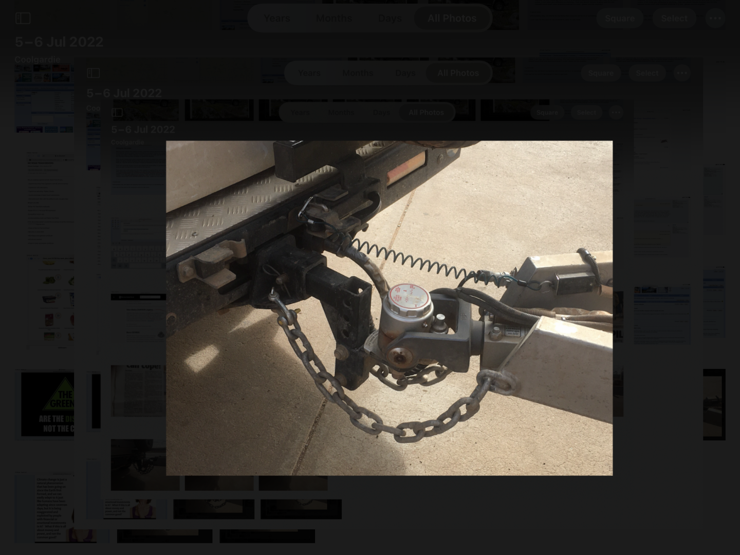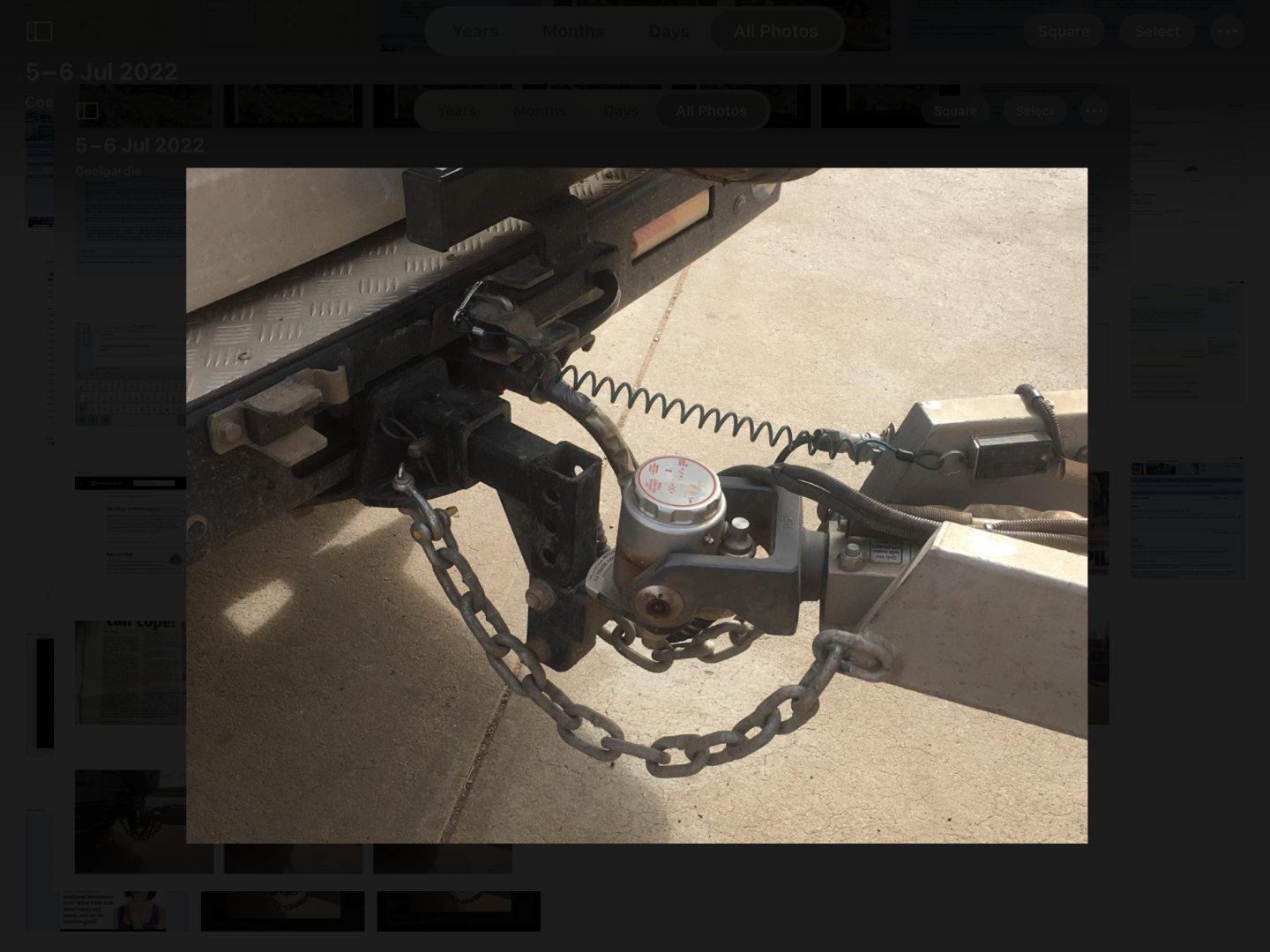 You've done well Stephen, with 3 out of 3. The long shackle appears to be stainless steel so is not allowed to be used on safety chains. The hitch was a bit low but the vehicle here can't go offroad with any decent weight anyway, so the hitch shouldn't be a problem. Ivan's observations also were pertinent. Cheers