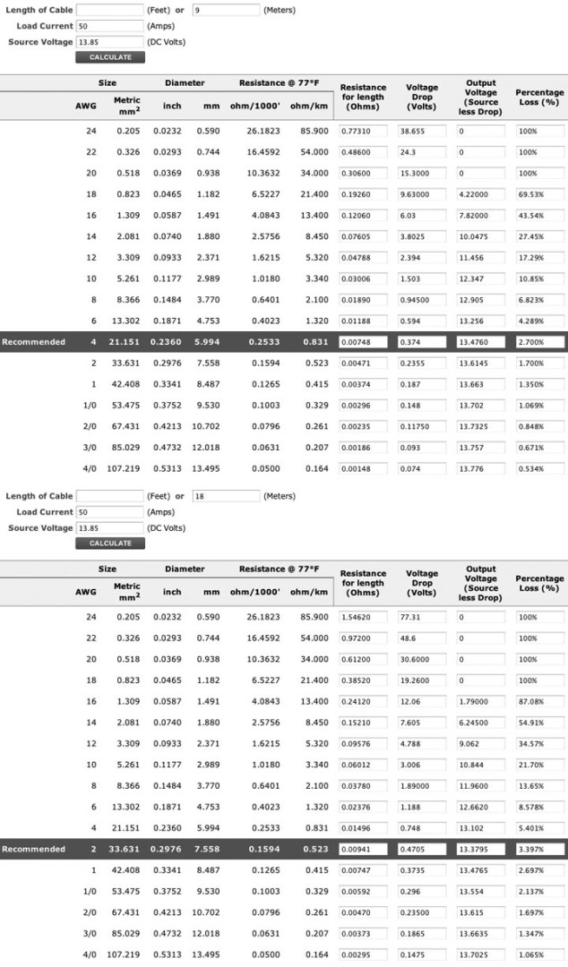 The cables are 10awg. The voltage drop issue is not with the inverter, its with the standing 12 volt feed to the fuse box.