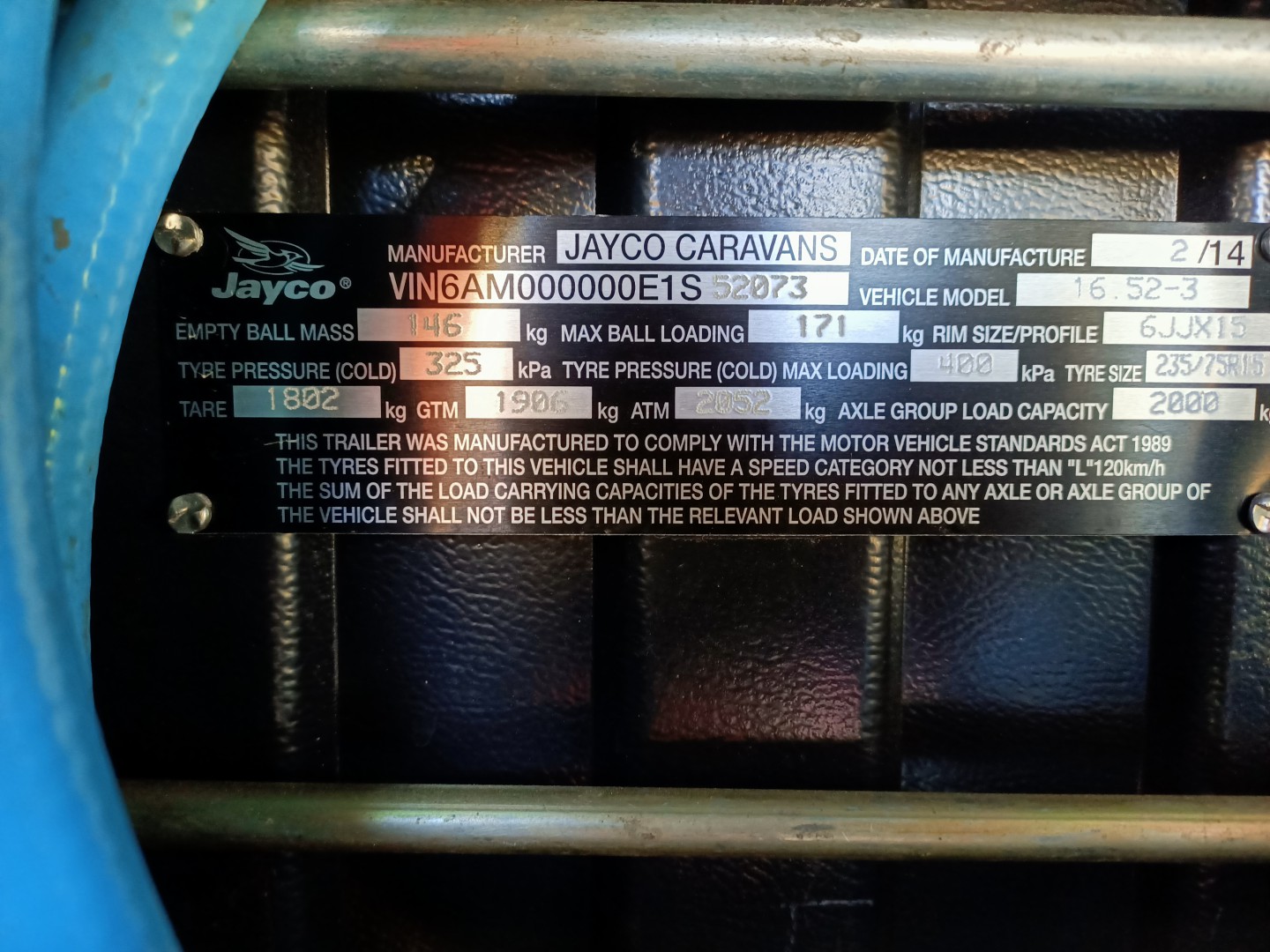 This is the plate from my van showing ATM, GTM, ATM, Axle group loading etc, the van has 2x80 litre water tanks + 2x9Kg gas bottles.