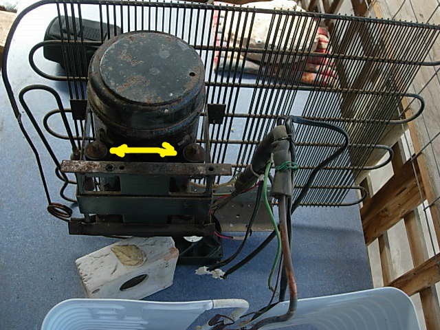 Picture of an Engel compressor. Theres 4 pins that the compressor sits on with rubber grommets. Check the rubber grommets arent perished or gone hard. The Engel compressor is naturaly noisy due to it being a solenoid type compressor running at 50Hz.