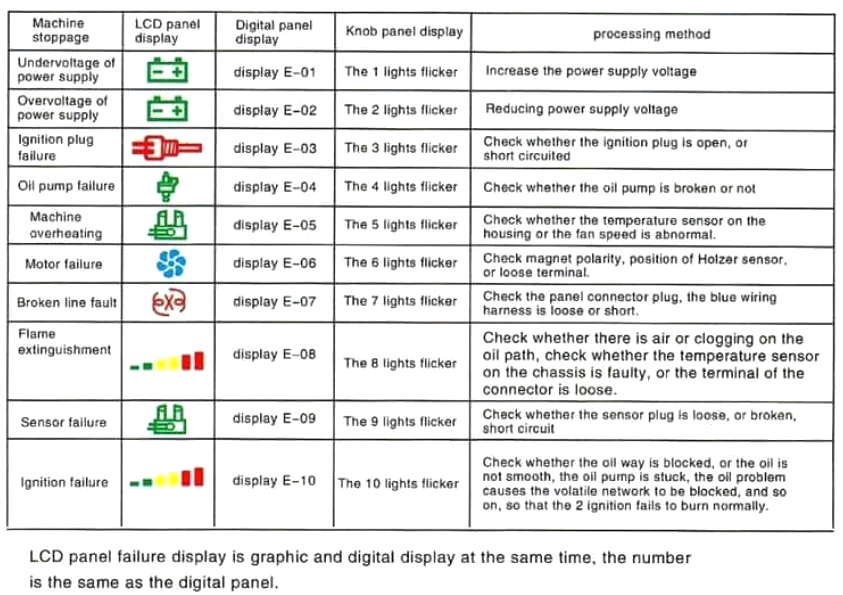 The list posted by AreWeLost applies to my diesel heater too but an over-voltage fault would be very unusual on a caravan/motorhome installation and probably the result of a hardware fault on the heater's PCB.