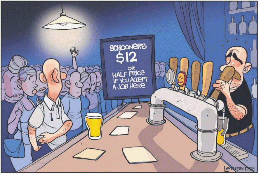 To go and buy five schooners today I am looking at upwards of fifty dollars. I notice when driving through country towns that used to have several pubs, most are now down to one, maybe two. It is not just RBT that has killed them, it is the cost of grog. Obviously if staff wages are included then beer is going to be expensive. I would imagine the only pubs that would be viable today in country towns are the ones operated by a husband and wife or a partnership arrangement with minimal hired staff numbers.