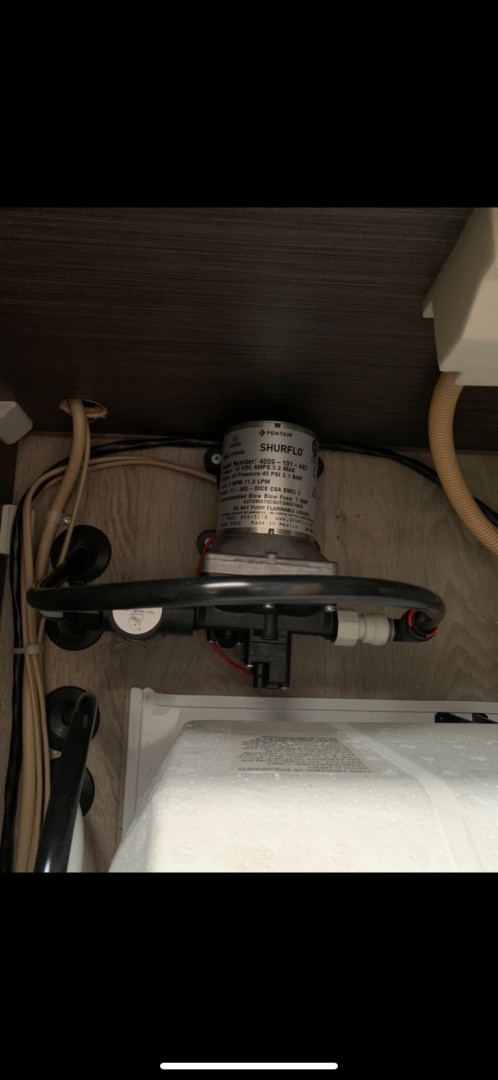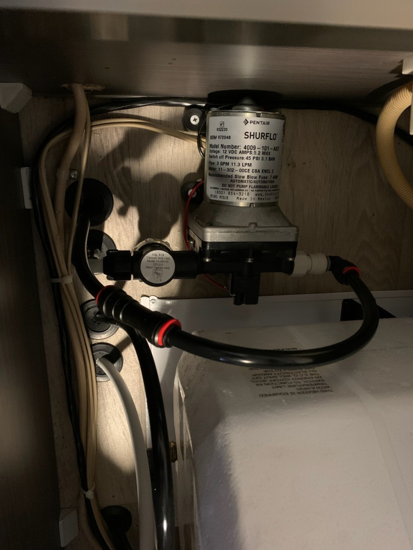 Similar to Steel Dog, I had to fit a Non Return Valve adjacent to the water pump in my Jayco van. The mechanism of the pump is not up to stopping back flow, as the pump wears and ages. From Steel Dog's photos, it looks like SD had a bit more space and a slightly different pipe layout. I used a couple of 90deg elbows as well.