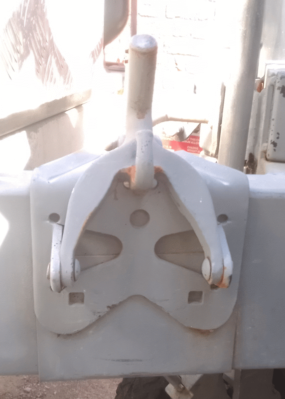 The hardened steel bar end rubbing on the softer galvanised (zinc coated) steel A-frame digs in and soon starts groaning at the slightest turn. Not good.