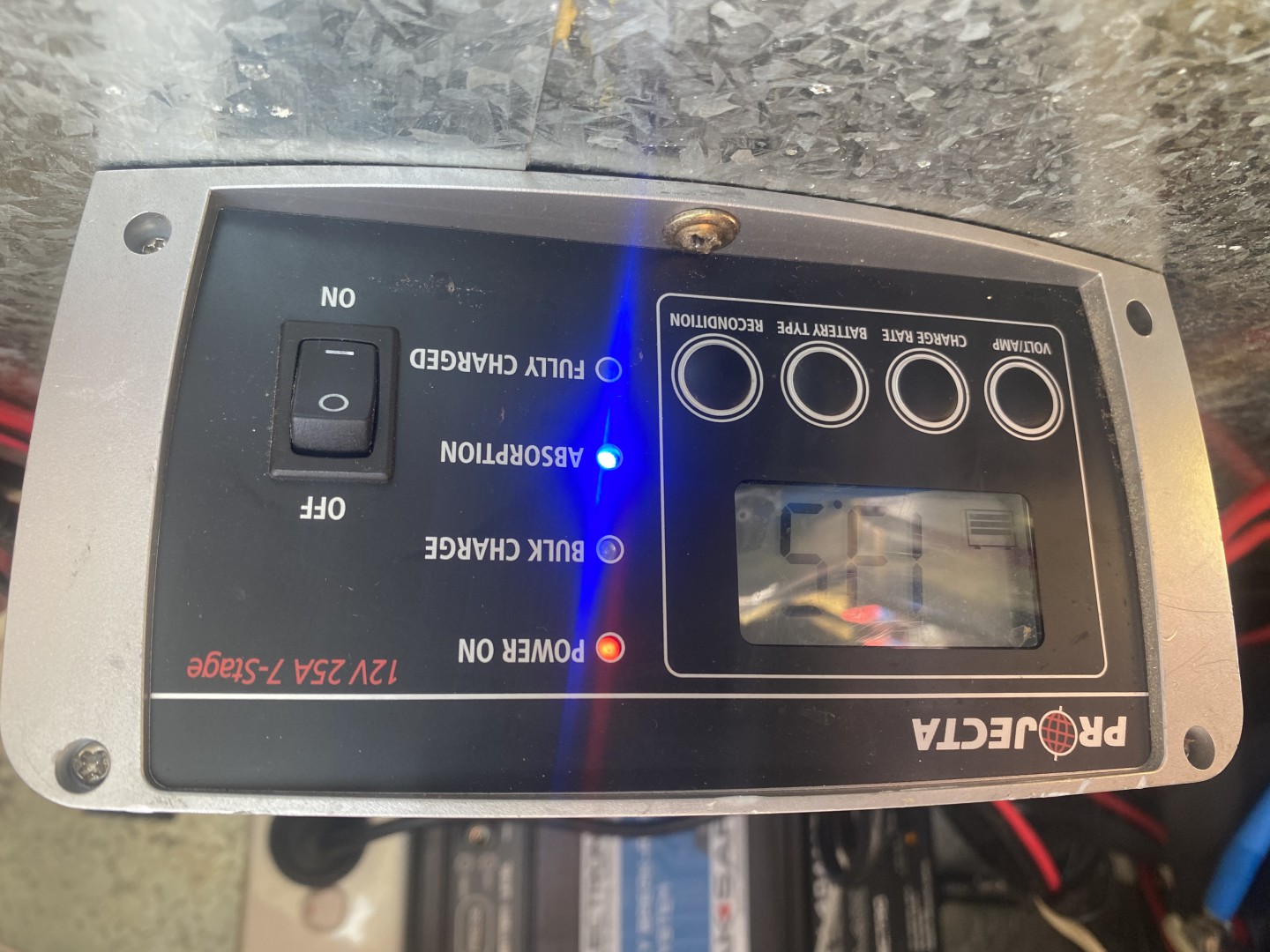 Indicators of b) are - voltage does not rise to 14.4v prior to dropping back to 13.8v, and there is no float mode indicator.