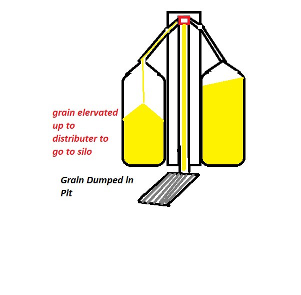 As mentioned inside the tower is a bucket elevator ( a vertical conveyor belt with buckets attached roughly every 300 mm) The bottom of the elevator is several metres underground, there is a pit beside the elevator with a hopper and a grate capable of taking the weight of a truck. A farmer in his truck can pull up on the grate and tip his grain, the grain is transferred to the bottom of the elevator, lifted vertically, at the top of the elevator there will be a diverter valve which determines which silo will be filled. There is a similar setup for the outfeed of the silo to fill trucks or rail wagons. That's basically how it works . Ian