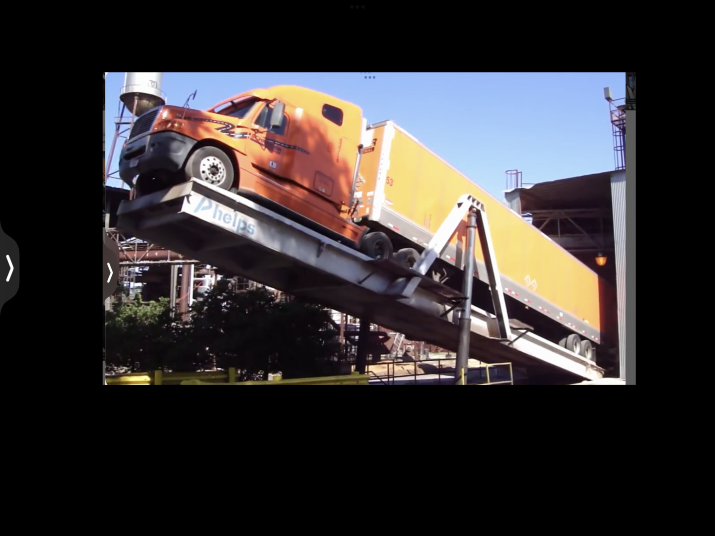Although American, this is an example of using a hydraulic ramp to tip.